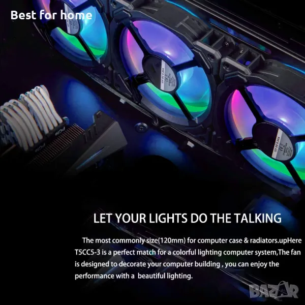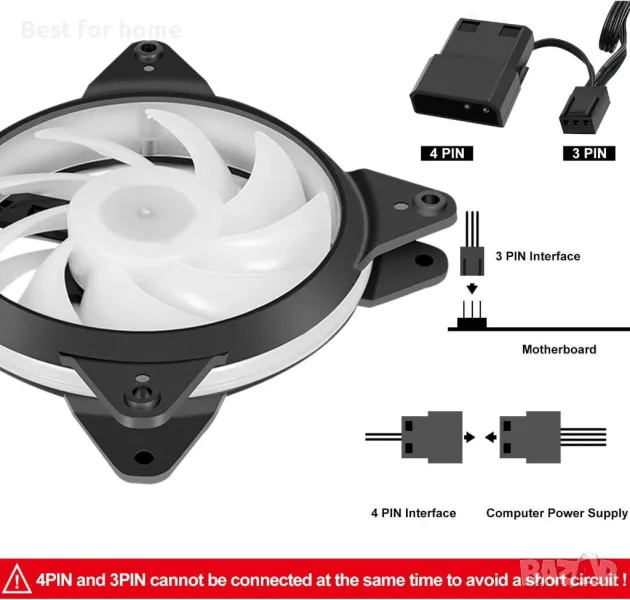 4. Широка съвместимост: Най-често срещаният размер от 120 мм за компютърна кутия или радиатори. Съвместим 3-пинов конектор за дънна платка и захранване, който работи и с 4-пинов за PSU