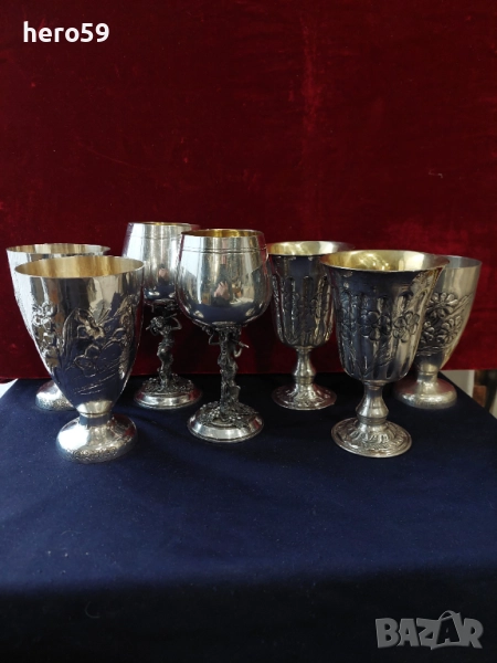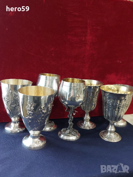 Поради новата политика на базар бг. се налага да правя лотове на обявите ми.Всеки който иска повече информация за даден артикул ще му бъде предоставена на вайбър след като се свърже с мен.Благодаря Ви предварително за разбирането!Предлагам три двойки сребърни чаши за бира или вода с вместимост 330 мл.Изработени от солидно сребро проба 800.