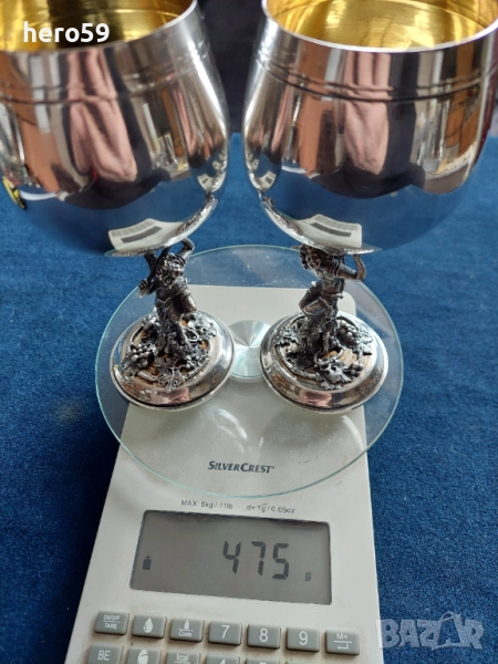 Три двойки маркови Сребърни чаши за вода или бира,вместимост 330 мл.Сребро 800 /3 евро за грам/ → Обява 49723132