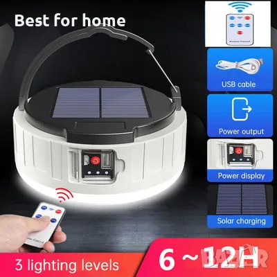 Соларна лампа за къмпинг Употреба: Осветителен модул: 400LM Режим на превключване: Ръчно/дистанционно управление LED мъниста Модел: 5737 Ъгъл на лъча: 180° Мощност: Цветна температура: 5500k до 7000k Светлинен източник: LED крушки Сертификация: CCC,ce,FCC,ROHS,RoHS,FCC,CE,CCC Марка: KSIJEH Произход: континентален Китай Тип артикул: Преносим прожектор Слънчево осветлениер: Преносимо осветление Слънчево зареждане: Осветление