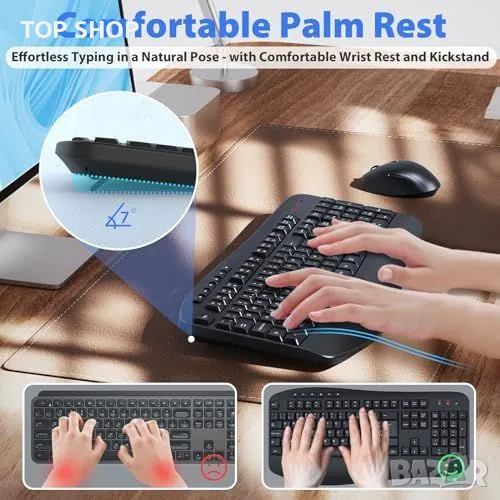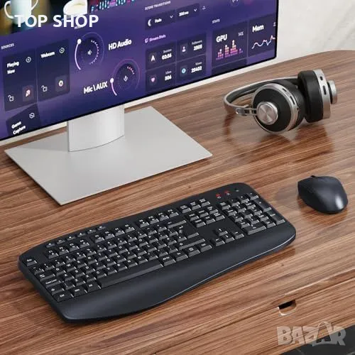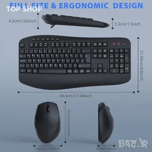 Нов Ергономичен Безжичен Комплект Клавиатура и Мишка с USB за PC и Лаптоп → Обява 49723861