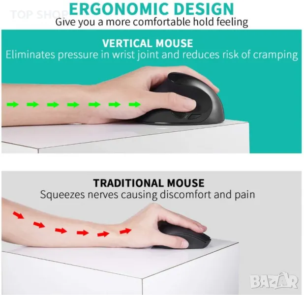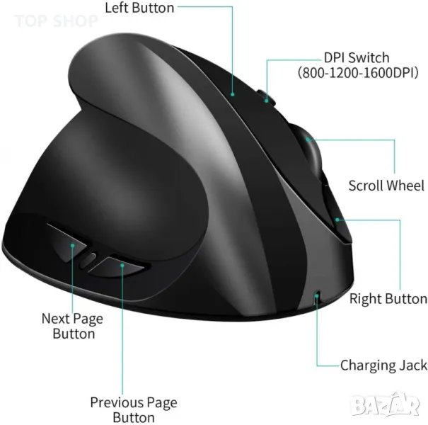 Нова Мишка за лява ръка акумулаторна безжична ергономична вертикална → Обява 49723873