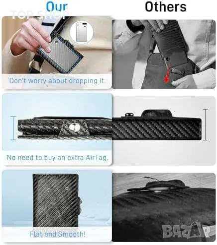 Ново Тънко карбоново портмоне с RFID блокировка и локатор iOS Find My и RFID защита Мъжки портфейл → Обява 49723883