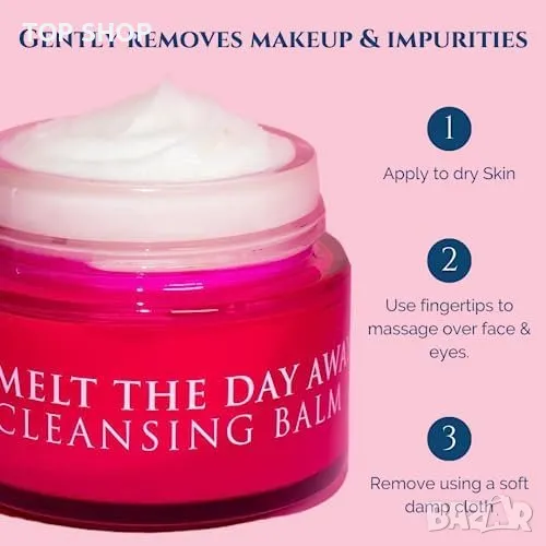 Начин на употреба: Нанесете балсама върху суха кожа и масажирайте лицето и очите с върховете на пръстите си. След това го отстранете с мека влажна кърпа. За допълнително усещане за чистота можете да направите двойно почистване, като използвате балсама като средство за отстраняване на грим, последвано от обичайния ви почистващ продукт. Можете също така да оставите балсама за 10 минути като мини маска за лице, за да осигурите допълнителна хидратация и подхранване.