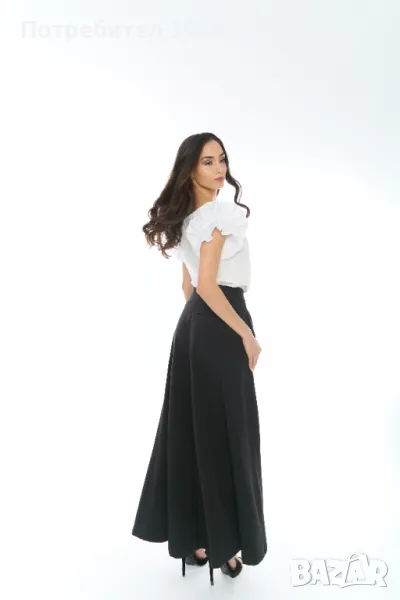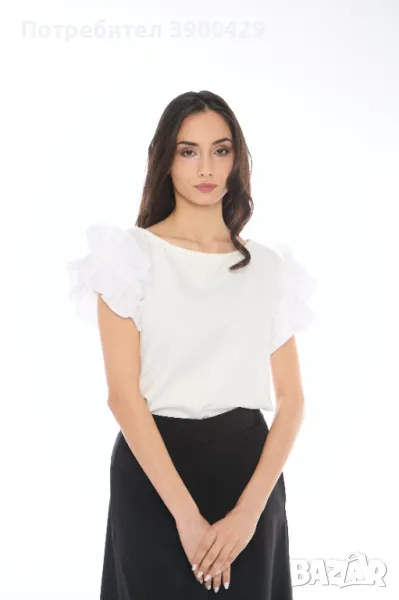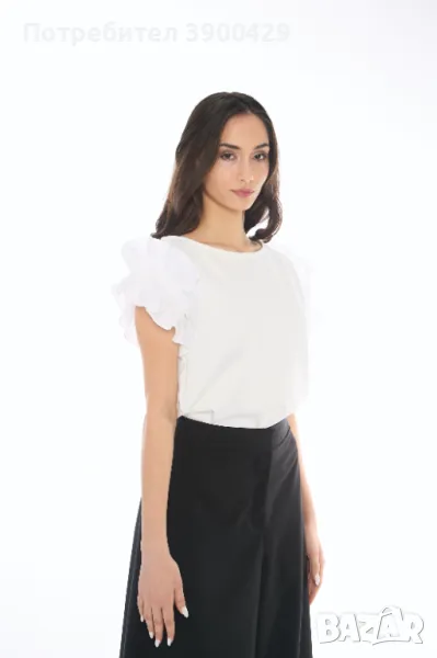 Нежен топ, изработен от памучно трико, с красиви къдри на ръкавите.