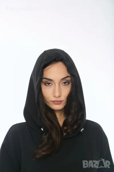 Блузата към сета е с голям преден джоб и качулка с шнур.
