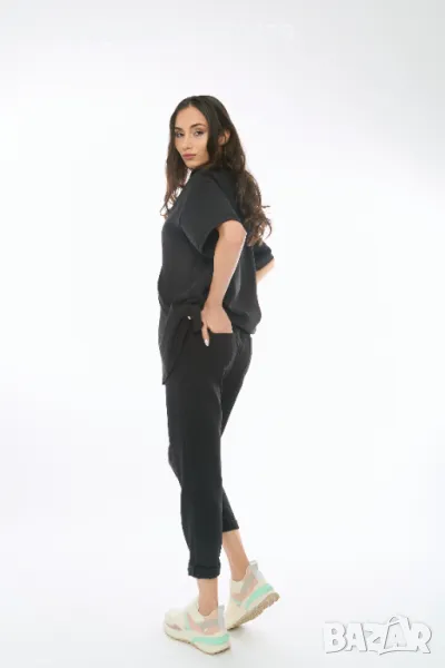 Панталона е комфортен за ежедневието, с ластик на талията и джобове.