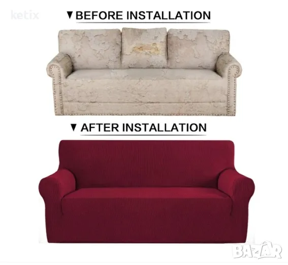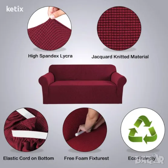 Калъфът за диван осигурява уникалност и персонализира всяка стая, чрез цвят и външен вид. Този подвижен калъф изцяло покрива дивана и е изработен от еластичен и устойчив материал (96% полиестер, 4% спандекс), който не се мачка и не избледнява.