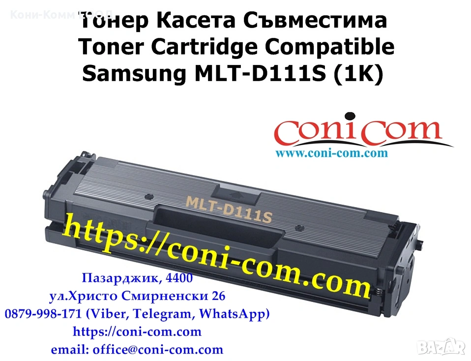 Samsung MLT-D111S Съвместима Тонер Касета 1000 стр. → Обява 49726037
