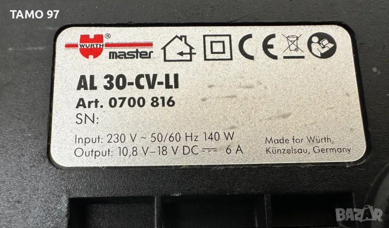 Продавам бързо зарядно устройство на Вюрт за литиево-йонни батерии от 10.8 до 18V 6.0Ah с много запазен външен вид и работи отлично, оригинално немско производство, внос от Франция. Зарядното е идентично и съвместимо с батерии от професионалната серия на Bosch и Spit, но не става за батеии на Вюрт от M-Cube серията!!! Пращаме с опция преглед и тест с куриерска фирма еконт може и лично предаване за гр. Шумен.