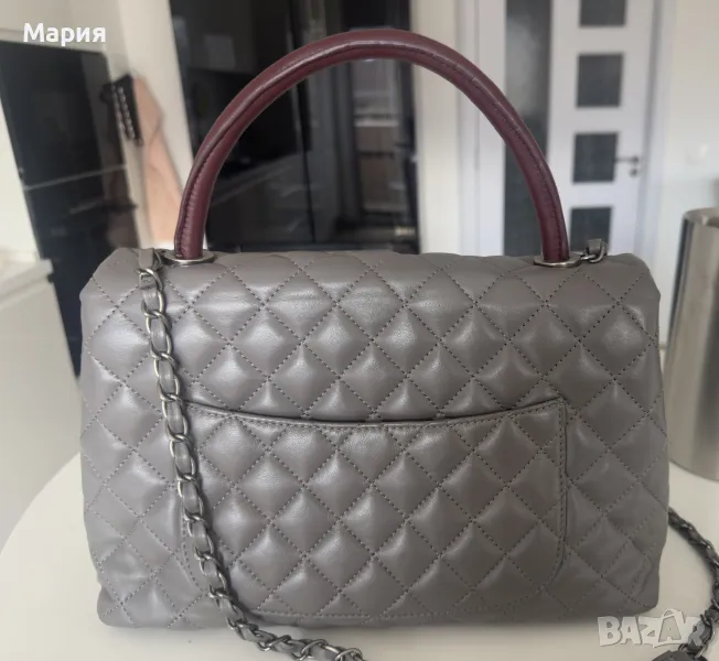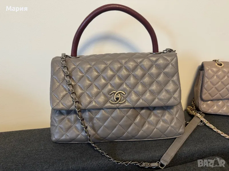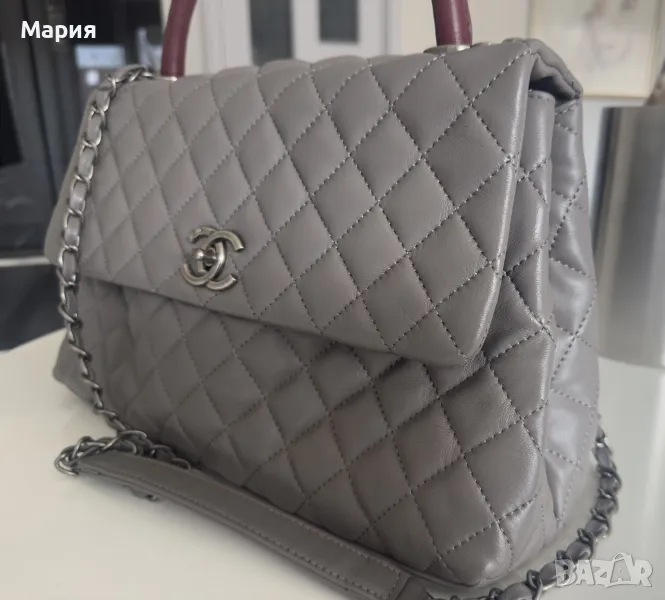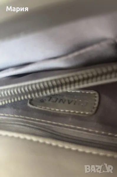 Красива дизайнерска чанта “Chanel” от естествена кожа сива с къса и дълга дръжка.