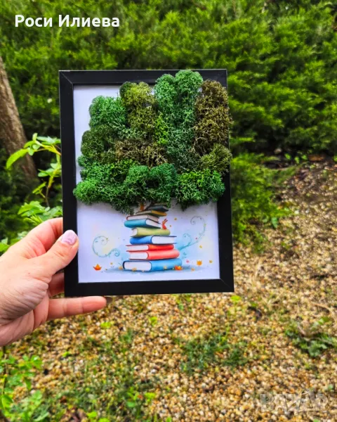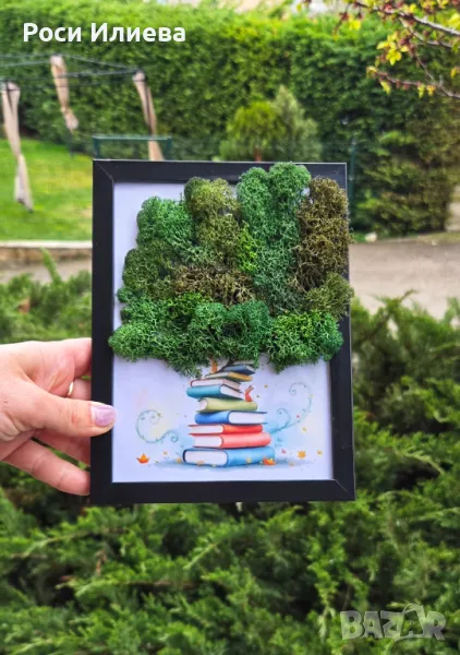 Картина "С любов към Знанието" декорирана с естествен скандинавски мъх → Обява 49726797