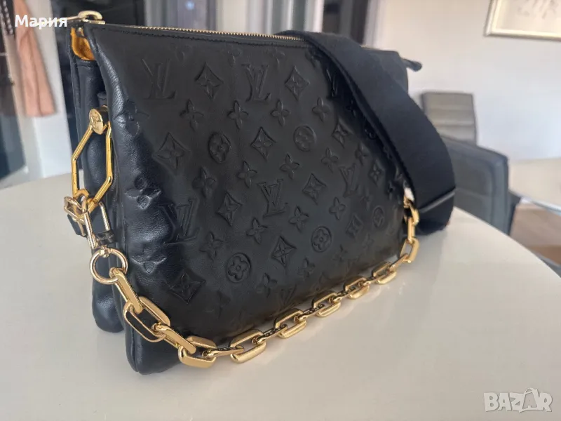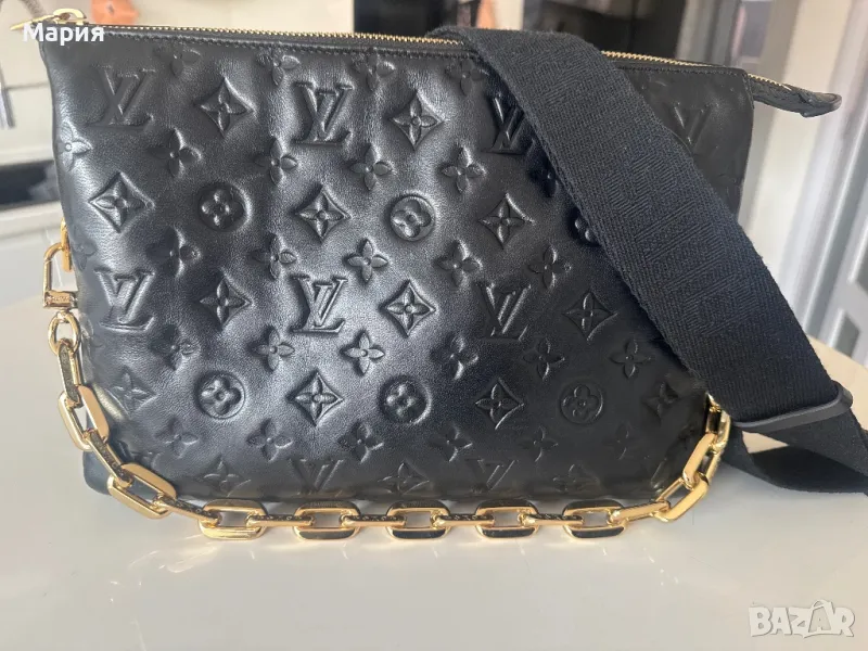 Дизайнерска черна чанта LV от естествена кожа с две дръжки и монограм. → Обява 49726966