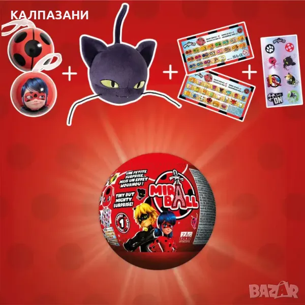 Всяка топка Miraball съдържа 1 метална топка + 1 плюш + 1 страница с блестящи стикери + 1 листовка за колекциониране + 1 панделка.