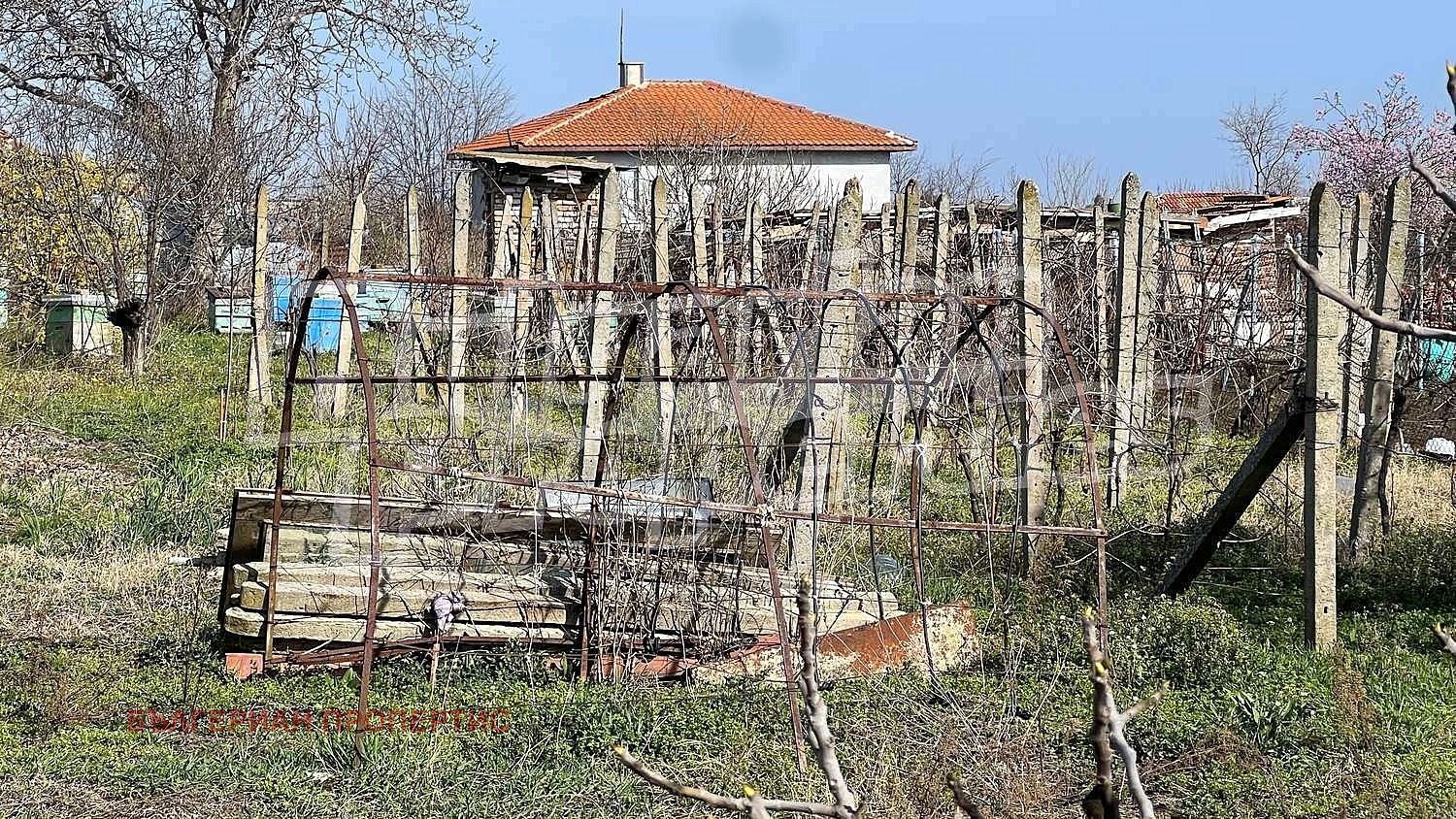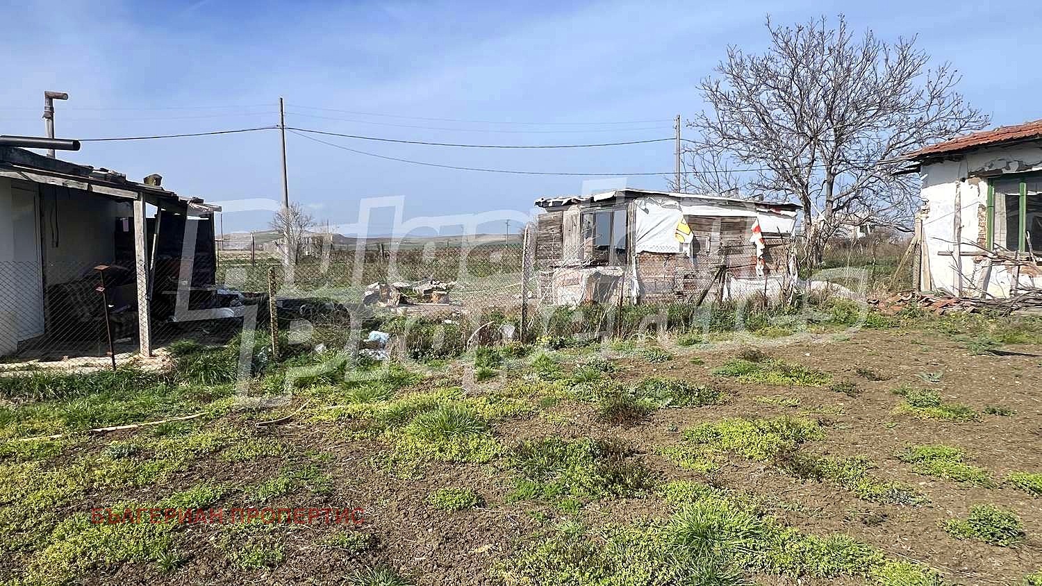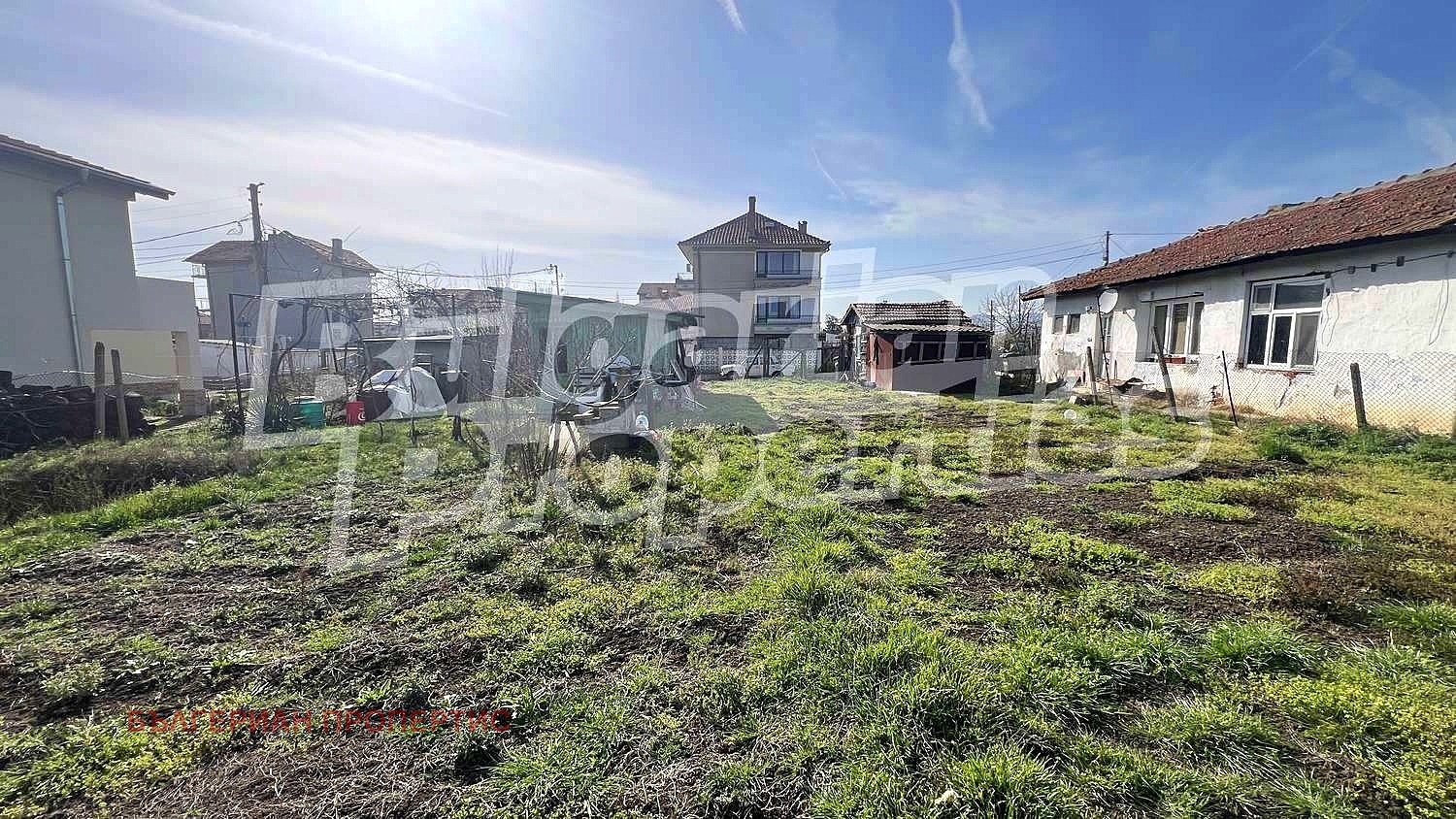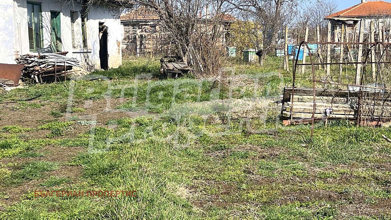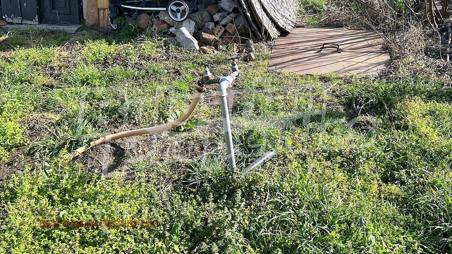 Парцелът е равен с правилна форма и ограден с метална мрежа. Включва стара къща за събаряне, лозе и навес/барака с ток и вода.