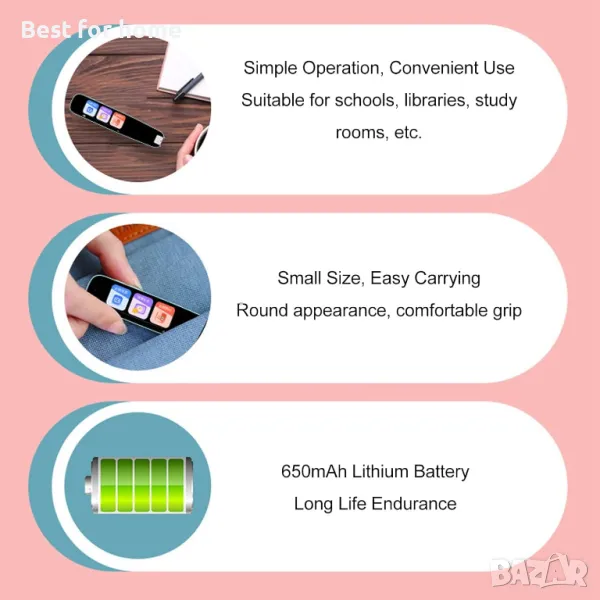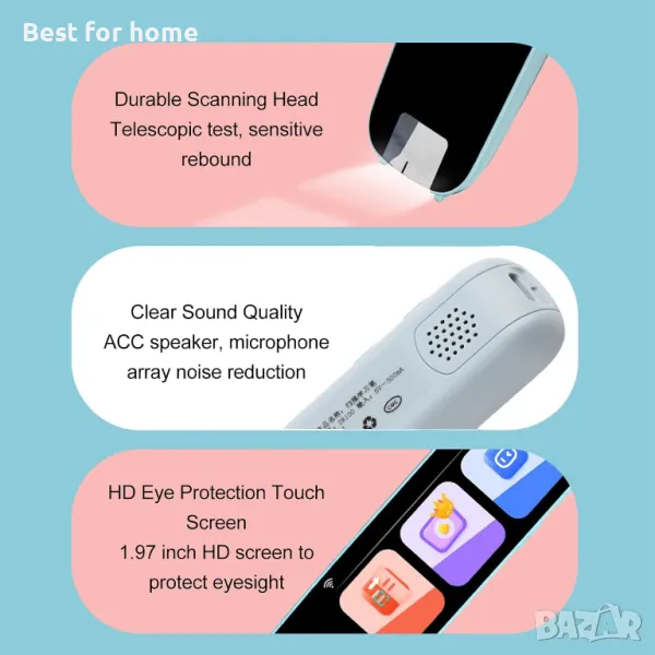 МНОЖЕСТВО ФУНКЦИИ: Поддържа сканиране на английски, китайски, древна поезия, думи, фрази, дълги изречения и др. Бутони и операции с докосване, прости и практични.
