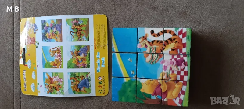 дървени кубчета пъзел, всеки образува по 6 картинки, 15 лв. за двата