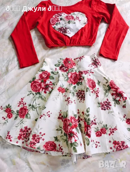 Супер красив комплект на Vanitta Fashion, който се състои от разкроена пола с висока талия и къса блузка с дълъг ръкав