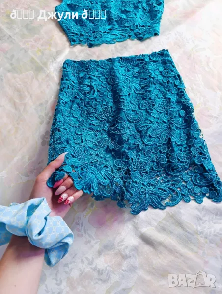 Нов ефектен сет от едра дантела тюркоаз → Обява 49729762