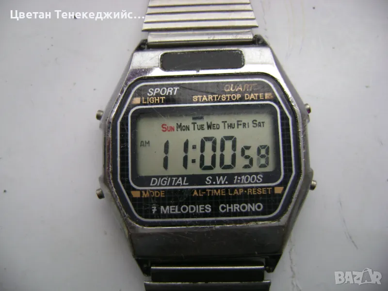 3.Ретро кварцов часовник Sport.Ден,дата,аларма с мелодии,подсветка,хронометър.Оригинална метална верижка-30лв.