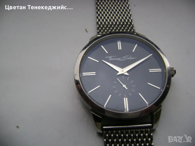 1.Елегантен мъжки кварцов часовник Thomas Sabo.Много добро състояние.Работи точно.Малък секундарник.Водоустойчив 5 атм.Диаметър на касата без коронката 42мм.Оригинална метална регулируема верижка.-130лв.