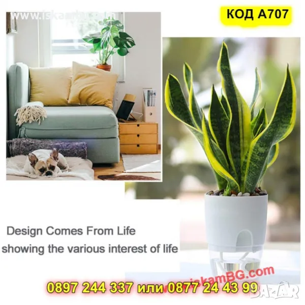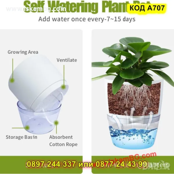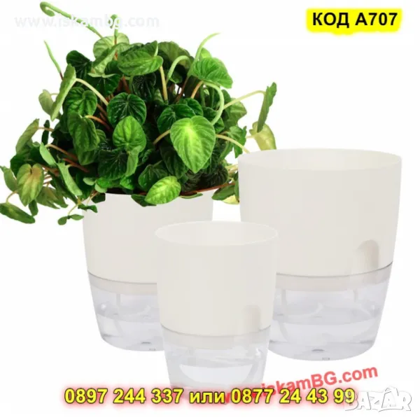 1 брой саксия с фитил и резервоар за вода