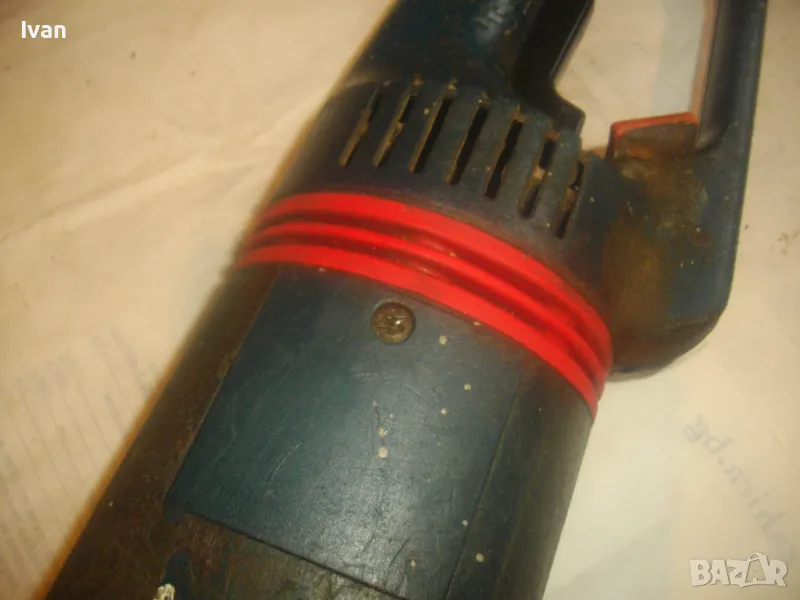Голям ел. ъглошлайф на Бош, модел Bosch Professional GWS 21-230HV, предлагащ се цял за части или за ремонт - някой да си го оправи. Не тръгва, не мога да определя проблема. Оригинален немски с производител Robert Bosch GmbH 2008 г. Мощност 2100 вата, защита 11,3 ампера, за дискове размер ф 230 мм.Гумирана червена антивибрационна мембрана между дръжка и корпус за убиране на вибрациите при рязане, стоменан кожук на редукторната кутия, шпиндел М12, гайка, шайба налични, 3 положения за предна дръжка. Машината е без предпазител и без предна дръжка. Тегло 6,0 кг.