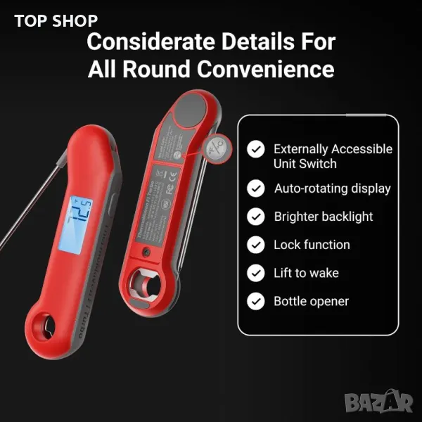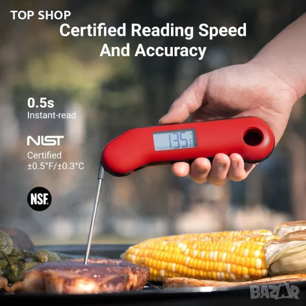 Цифров термометър за месо, Термометър за храна с незабавно отчитане по-малко от 1 секунда, IP67