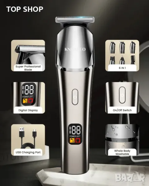 KNCANEO Машинка за подстригване за мъже, 11 в 1 с USB тип C, акумулаторна