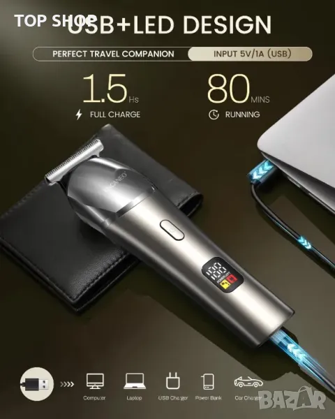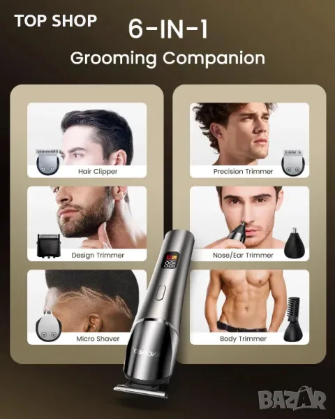 Този професионален мъжки комплект за подстригване включва шест подвижни ножчета за подстригване и пет регулируеми водещи гребена, което го прави подходящ за подстригване на брада, оформяне на косми в носа и поддържане на тялото. Неговият водоустойчив дизайн позволява лесно почистване, докато нискошумният мотор осигурява тихо изживяване, идеално за семейна употреба. Бързият USB акумулаторен тример осигурява до 90 минути работа без кабел с едно зареждане, с LED дисплей за наблюдение на живота на батерията. С щадящи кожата прецизни остриета, проектирани да избягват скубането на косата, този универсален комплект за подстригване е идеален за потребители от всички възрасти, предлагайки надеждно решение за подстригване за всеки.