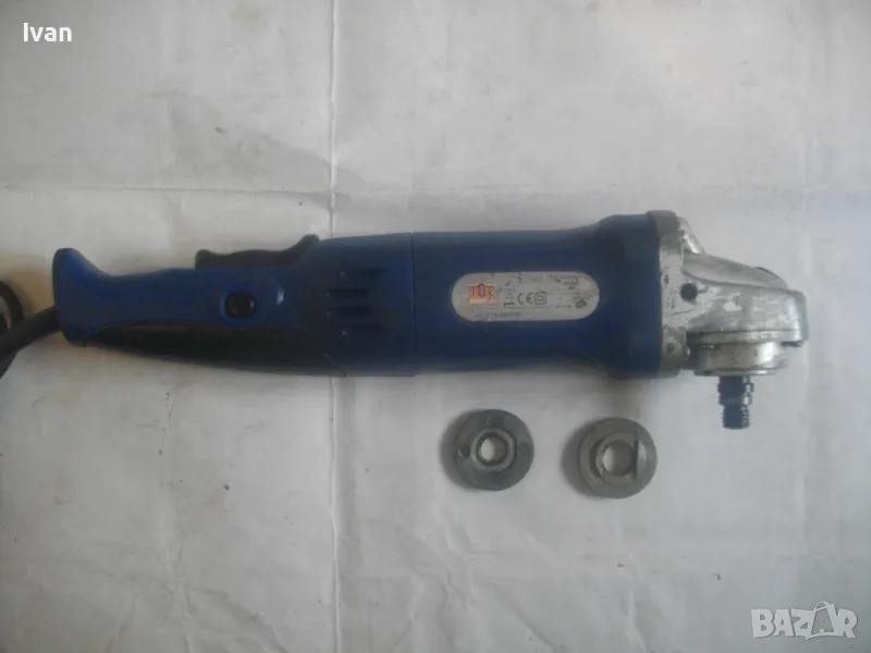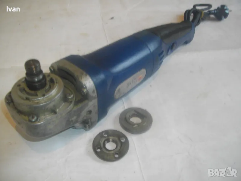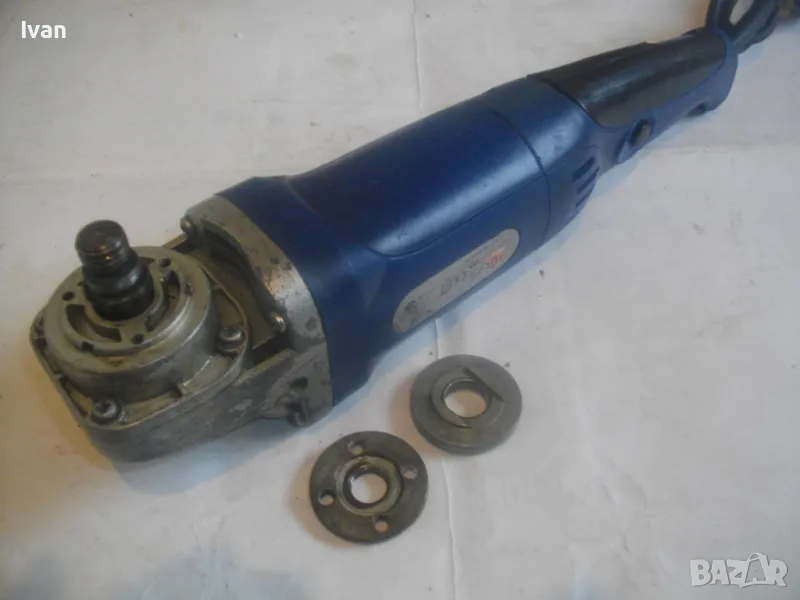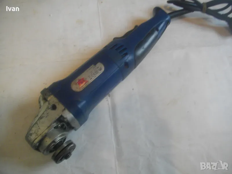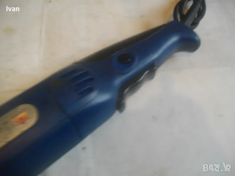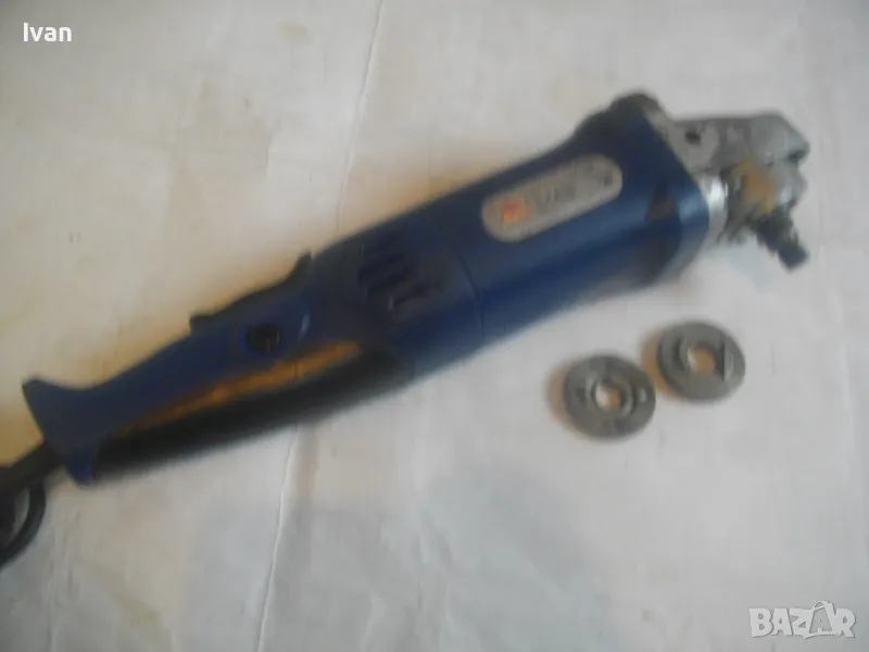 Маркиран производител - VARO VAN RONPUY Industries BELGIUM. Мощност 900 вата, скорост 11 000 об/мин, шпиндел М14, за дискове размер ф 125 мм. Горен пусков ключ с натискане спусък. Шайба и гайка на шпиндела налични. Стоперен бетон при смяна на диск, автостоп бутон. Дължина на машината 350 мм, тегло 2,5 кг. Цена 79 лв.