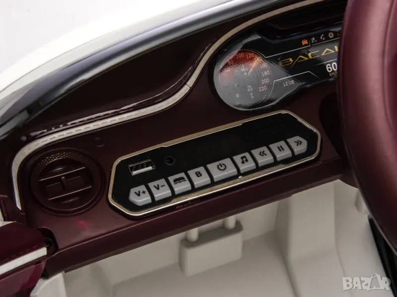 Детска кола Bentley Bacalar е оборудвана с LED осветление на фаровете, задните светлини и дори осветлението на таблото, което осигурява реалистичен и луксозен вид по време на шофиране.