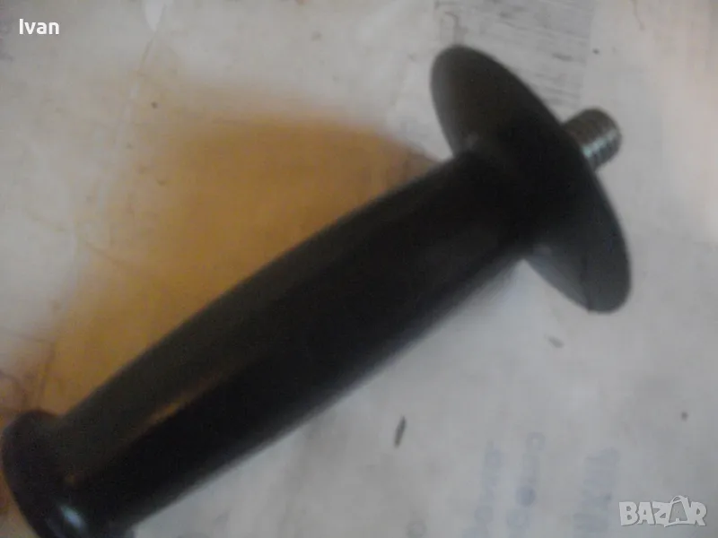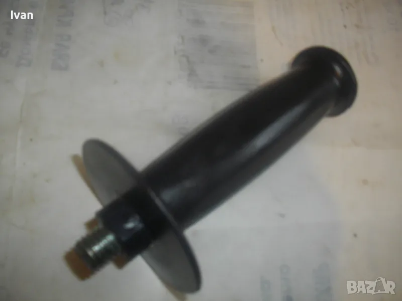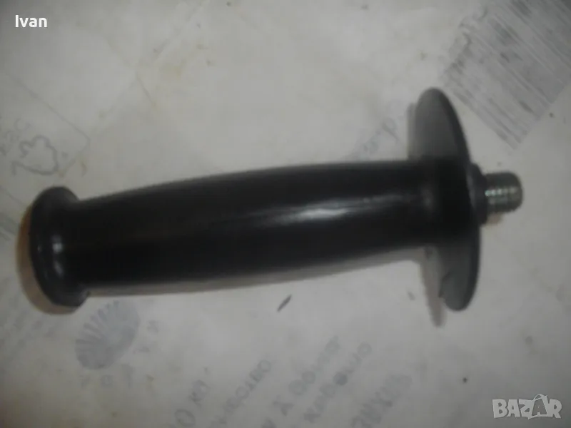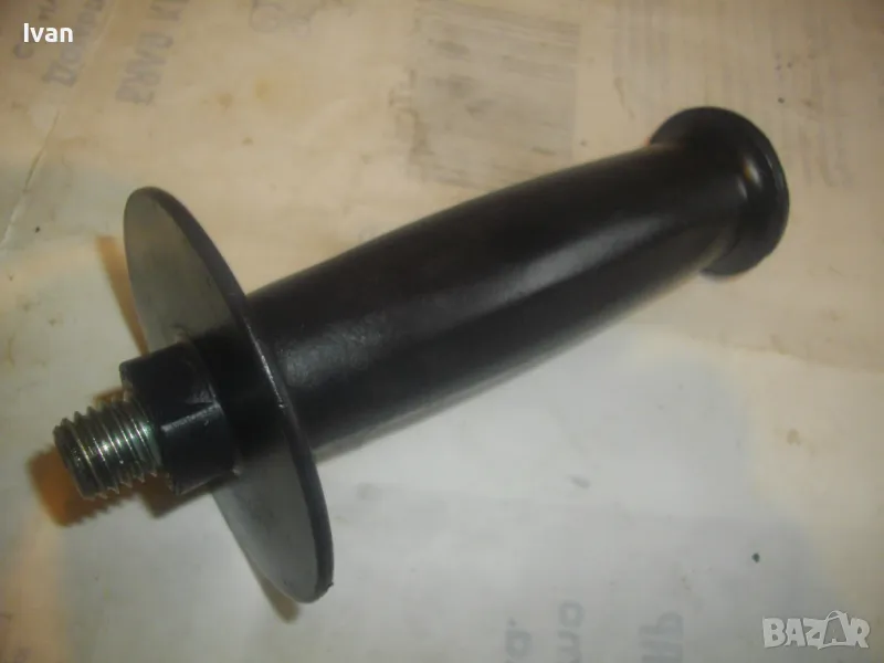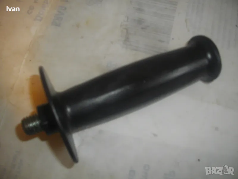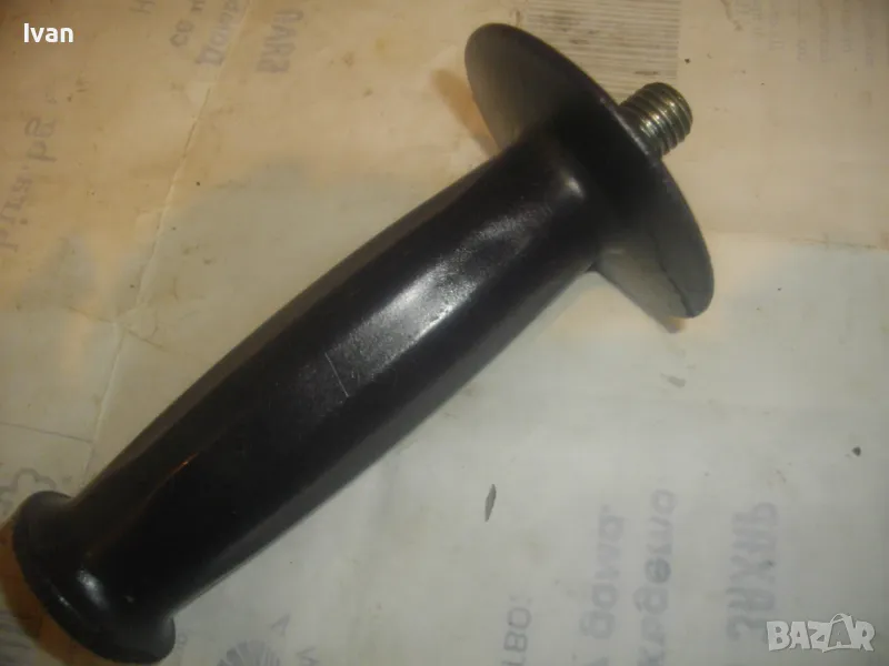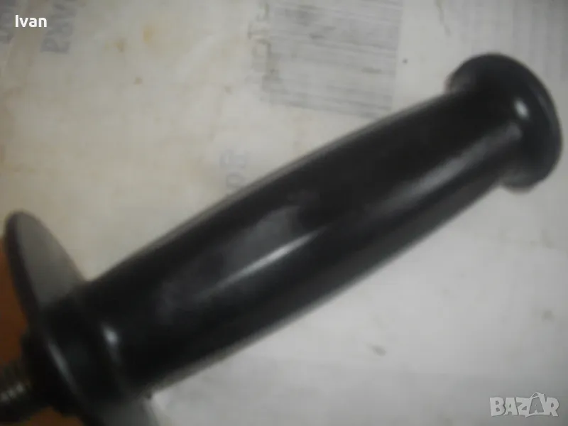 Странична универсална дръжка ръкохватка масивна черна с присъединителна резба М12 за машини голям ъглошлайф ф180-ф230 и за пробивни машини. Ръкохватката е старо качество от плътна твърда и здрава пластмаса от преди около 30 години. Дължина 145 мм, диаметър на ръкохватката при захвата за ръката ф40 мм. Тегло 0,5 кг. Цена 29 лв.