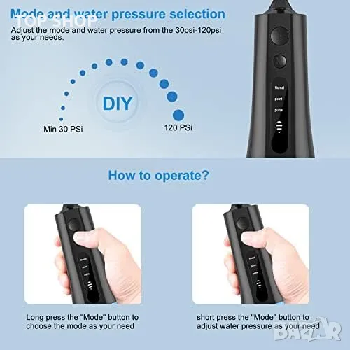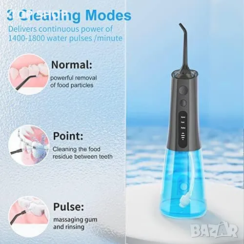 3 режима 6 струйни накрайника с 4 настройки на налягането и 400ML резервоар за вода