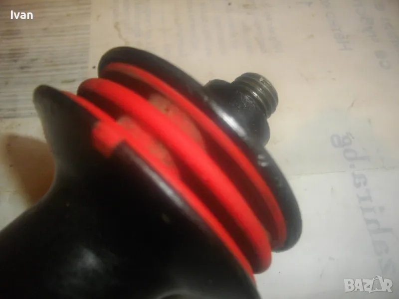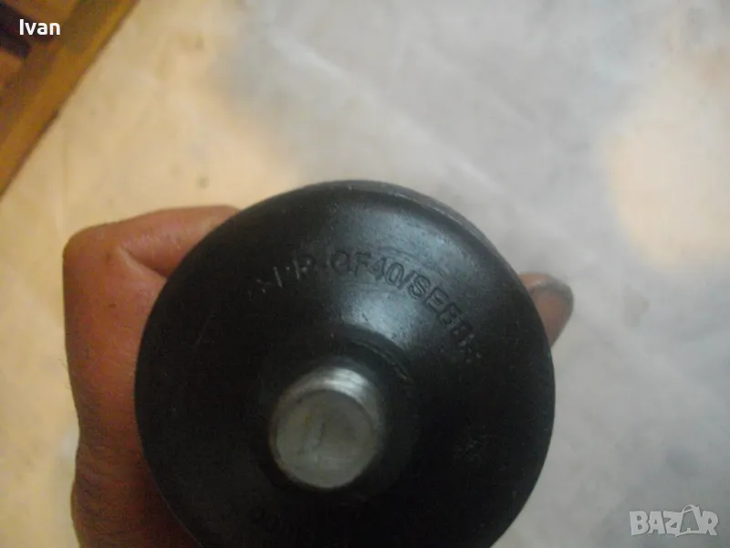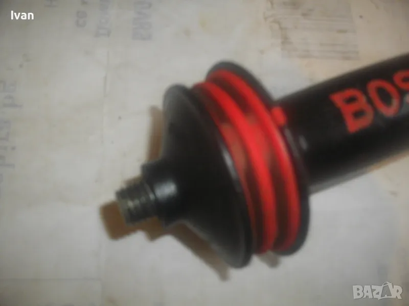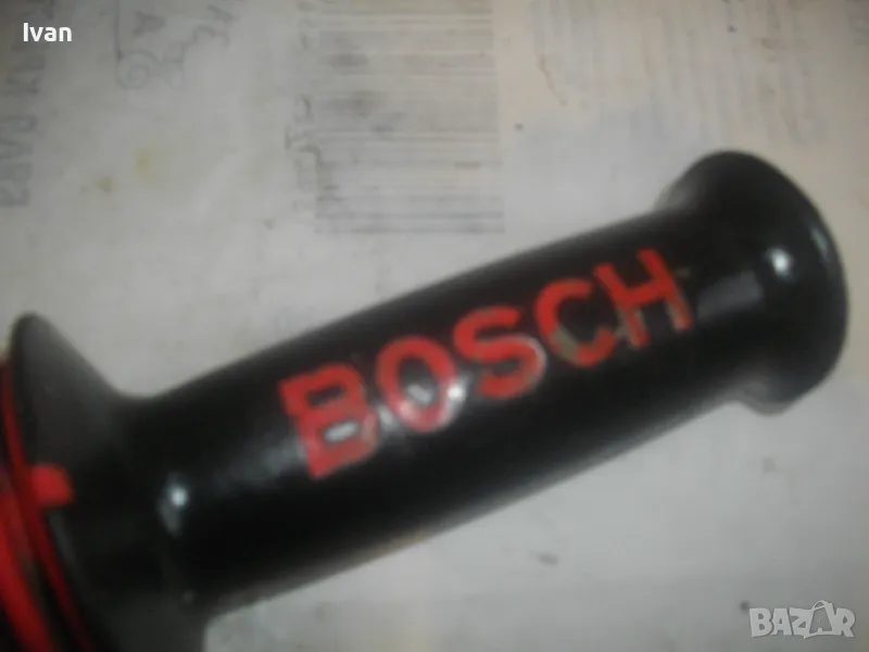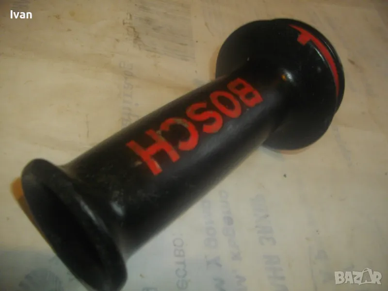 голям ъглошлайф ф180-ф230 и за пробивни машини. Дръжката е от масивна здрава пластмаса, с гумиран бранда на марката. Наличие на оригинален сериен номер и модел. Маркировки: BOSCH FF - GF40 SEBS. Резба за присъединяване М12. Дължина на ръкохватката 170 мм, диаметър при захвата за ръката ф50 мм. Гумирана червена мембрана за убиране на вибрациите при работа. Тегло на ръкохватката - 0,5 кг. Запазен външен вид и отлично работно състояние. Резбата за присъединяване няма никакво износване. Цена 39 лв.