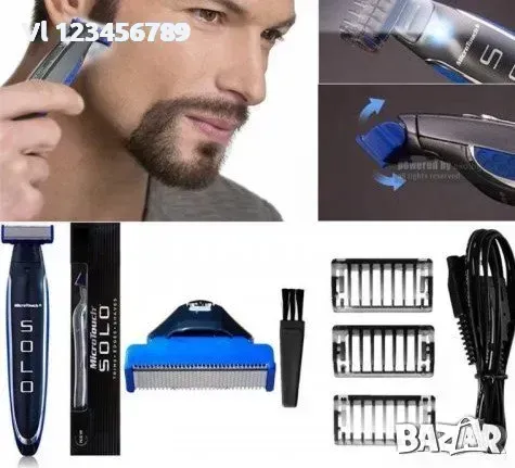 Микротъч Соло е тример с 3 приставки за оформяне на брадата (1 мм, 3 мм, 5 мм), който работи, без да се налага да използваш вода, да слагаш крем или пяна за бръснене!