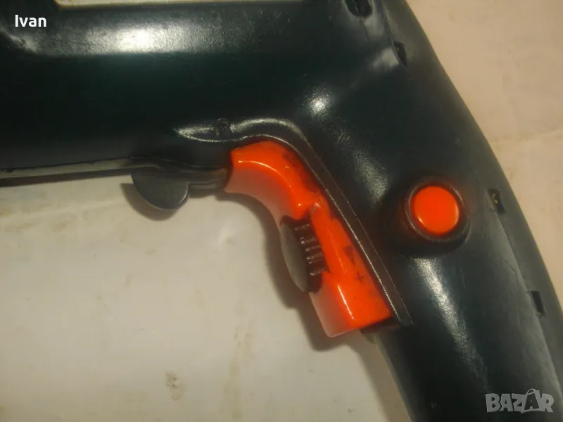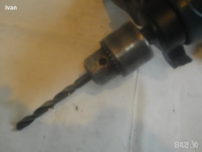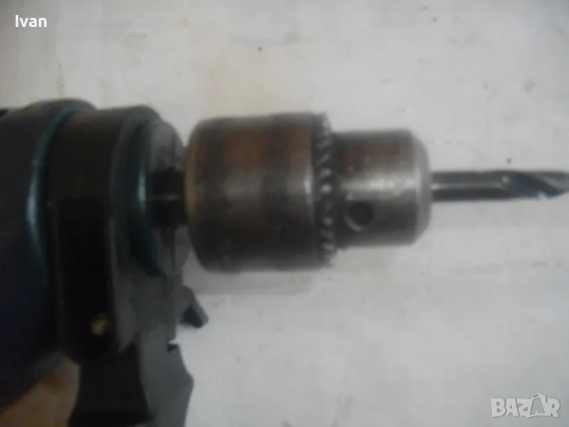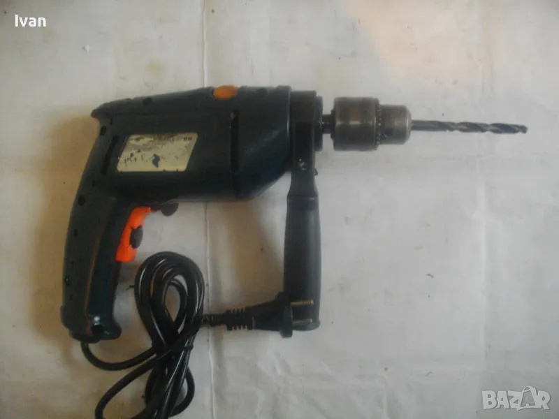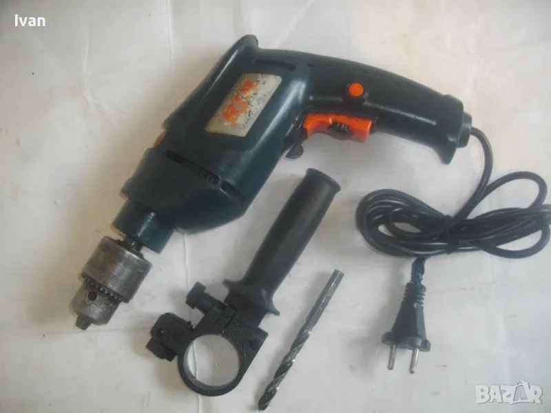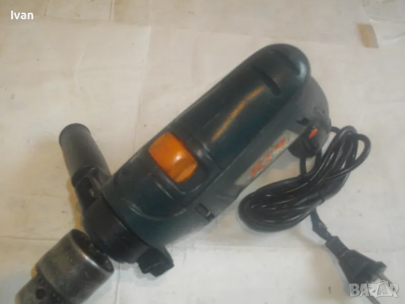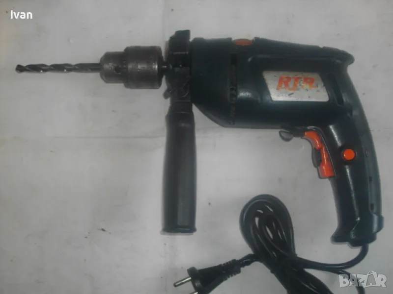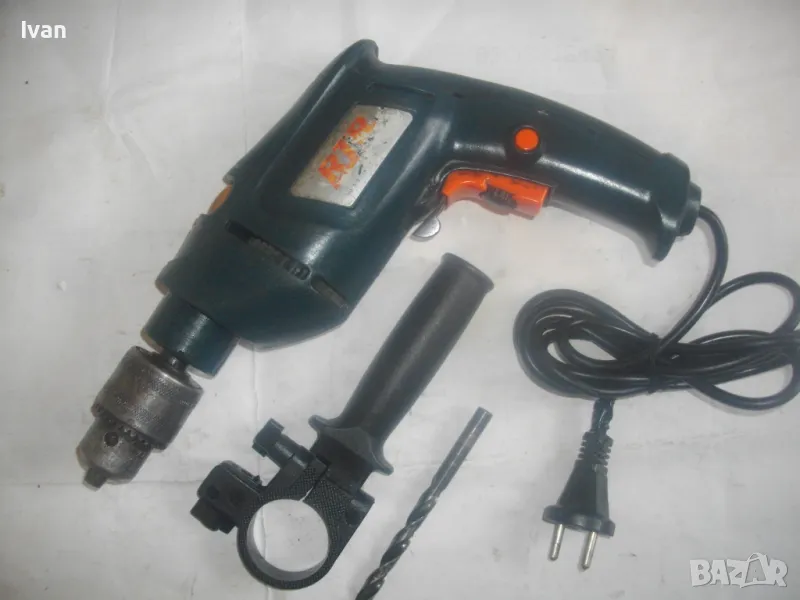 500 ватова електрическа бормашина дрелка, с реглаж на скоростта и метален масивен патронник със захват 1,5-13 мм. С машината е работено, но е в добро работно състояние. Марка RTR, 2 функции - пробиване и ударна. Мощност 500 вата, скорост 0-2700 об/мин, регулируема с потенциометър, разположен на спусъка. Налична е оригиналната предна дръжка ръкохватка на машината от здрава и масивна пластмаса. Автостоп, плавен старт, реверс смяна посока. Размери на машината 280 х 210 х 55 мм. Тегло - 2,8 кг. Поставена в патронника бургия за проба и тест. Патронника е без ключ към него. Натяга се ръчно. Цена 79 лв.