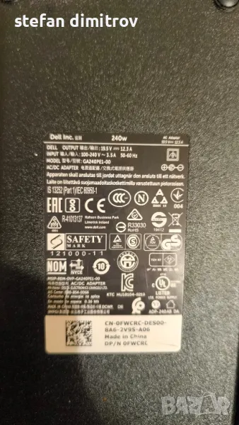 Подходящо за DELL alienware, precision и някои гейминг модели G3, G5, G7, зарядното става и за много други модели .за подробности 0899577637