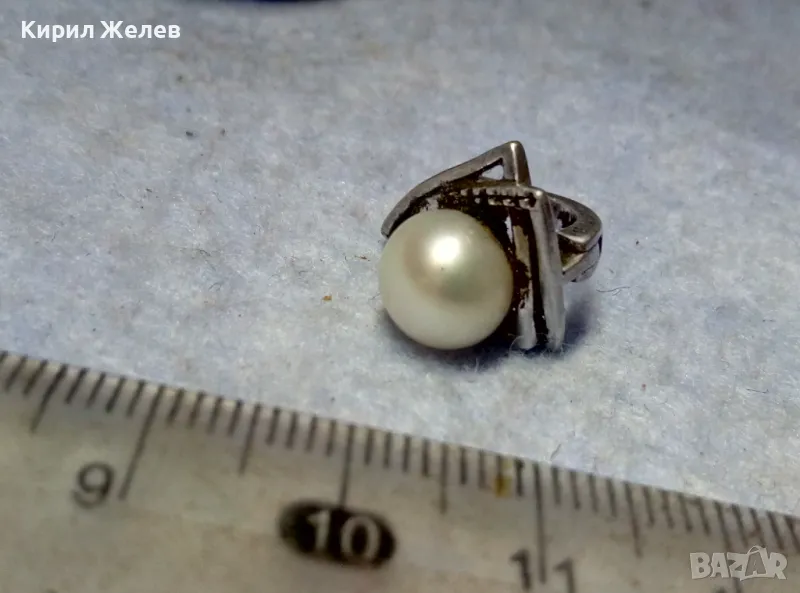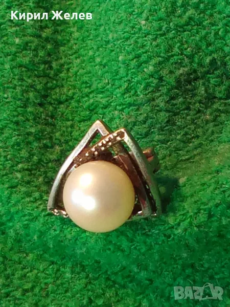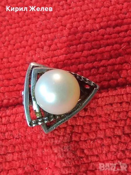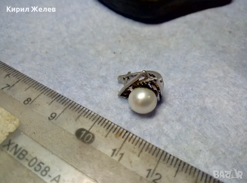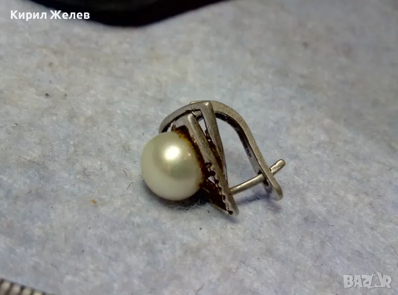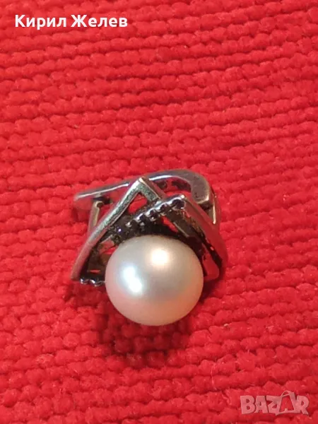 ШАРМАНТНА АНГЛИЙСКА ПЕРЛЕНА СРЕБЪРНА ОБЕЦА СРЕБРО 925 с БЯЛА ЕСТЕСТВЕНА ПЕРЛА / БИСЕР 48247