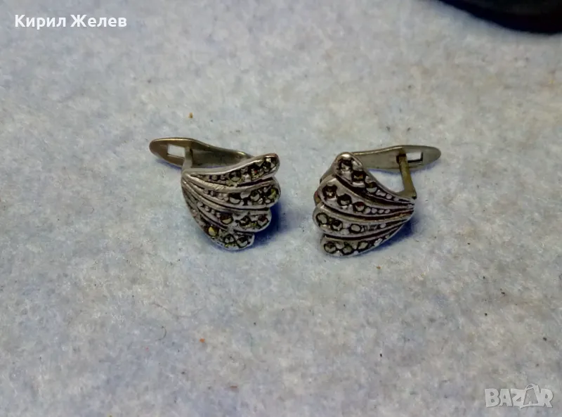 РЕТРО АРТ СТИЛ АНГЛИЙСКИ МАРКАЗИТЕНИ СРЕБЪРНИ ОБЕЦИ СРЕБРО 925 РЪЧНА ИЗРАБОТКА 48205