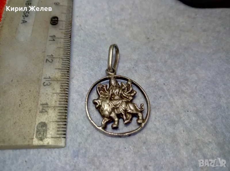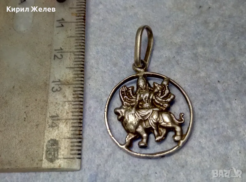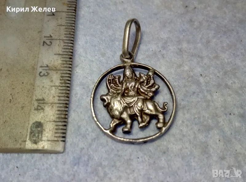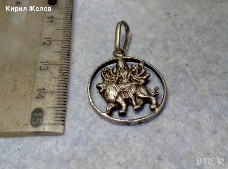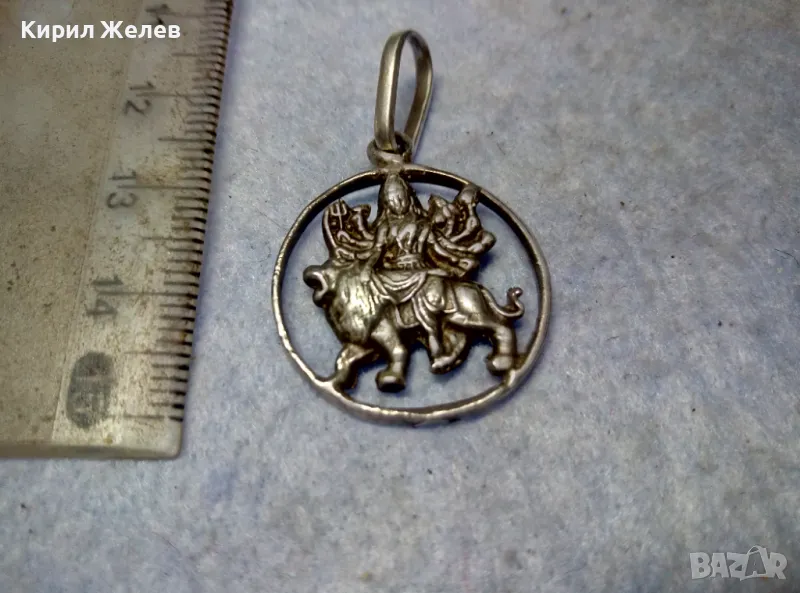 Durga Maa Vaishno Mata ТРАДИЦИОНЕН ХИНДУИСТКИ СРЕБЪРЕН ПЕНДАНТ СРЕБРО ВИСОКА ПРОБА РъчнаРАБОТА