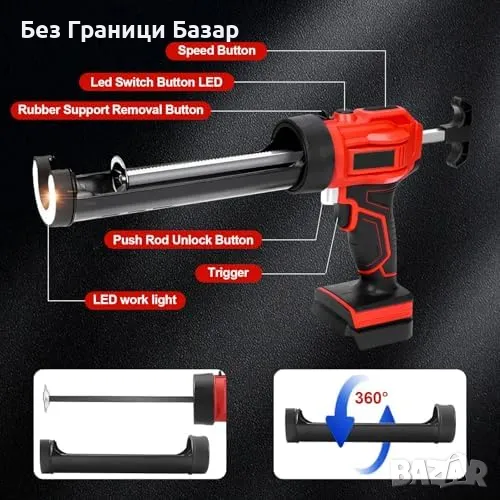 Нов Безжичен пистолет за силикон 21V + LED, 2x2000mAh батерии 4 скорости