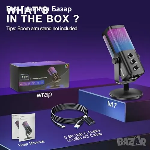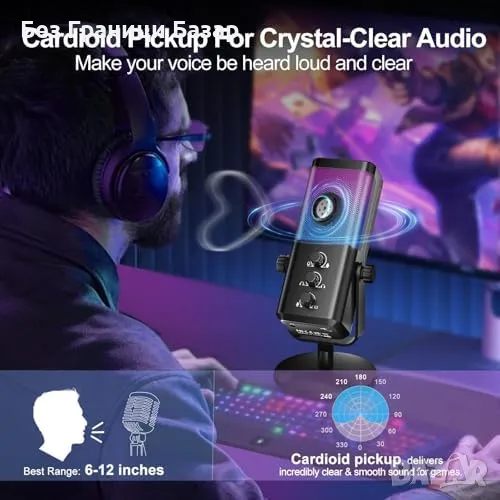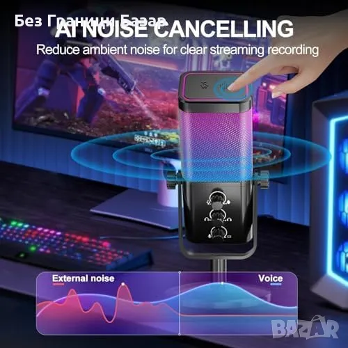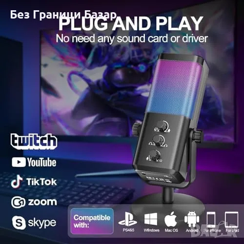 Нов RGB Кондензаторен Микрофон за PC PS4 PS5 Гейминг Стрийминг Подкаст