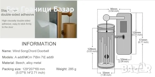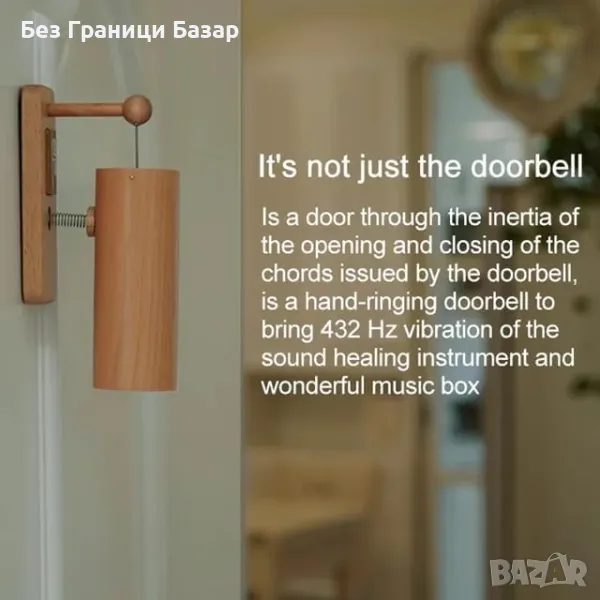 Нов Винтидж дървен звънец за врата 432Hz – за дом, офис, градина ретро стил