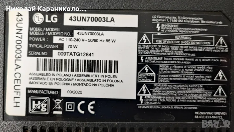 Продавам Power-CCP 508 CQC14134104969,Main-EAX69083603/1.0,Лед-TCL43D07-ZC62AG-05 тв LG 43UN70003LA