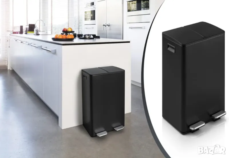 * Голям капацитет – 2 x 30 литра – Достатъчно място за ежедневните ви нужди, без да се налага често изхвърляне.