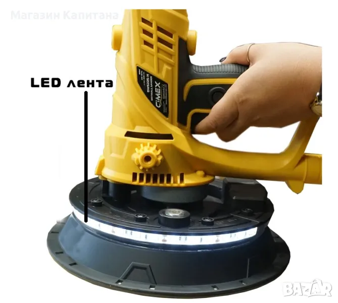 Водеща характеристика на машината за шлайфане на стени и тавани е възможността с нея да достигате до ъгли и малки пространства, които трудно бихте обработили с шлай маВградената LED светлина в корпуса на главата позволява по-добра видимост на обработваната повърхност и лесно откриване на недостатъците от обработка на повърхността.