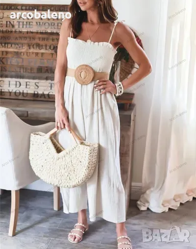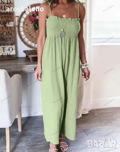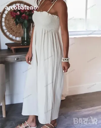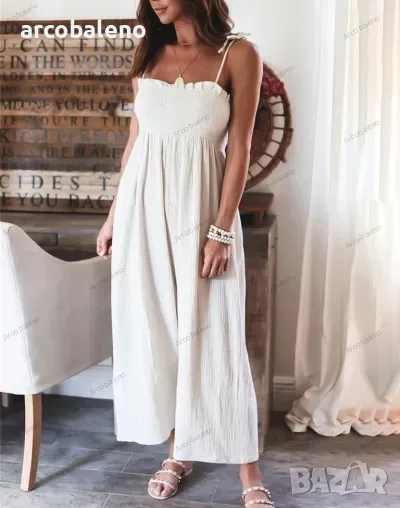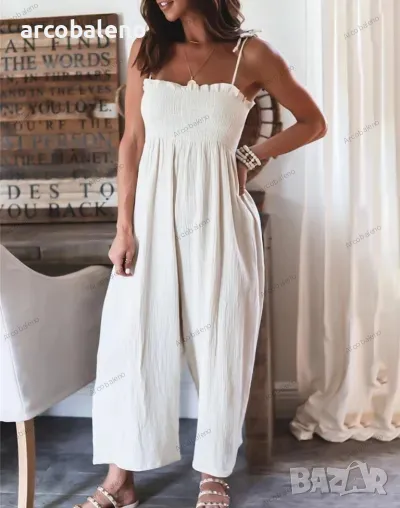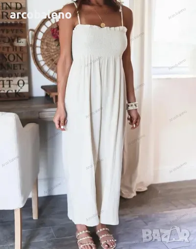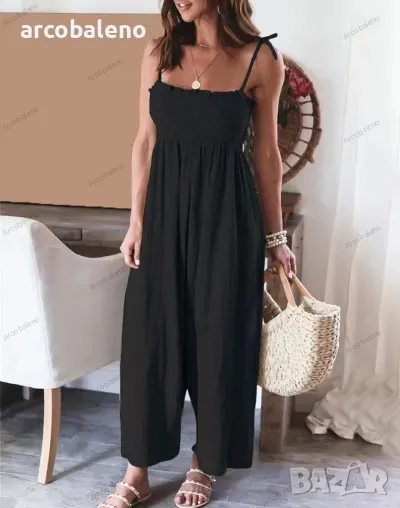 Едноцветен дамски гащеризон без ръкави с висока талия, 4цвята