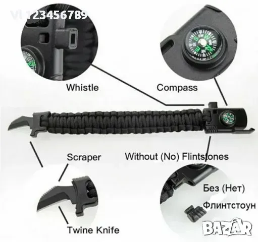 1. Стилна, дизайнерски изработена гривна за оцеляване - оптимален аксесоар за аварийни ситуации на открито , и вкл. като комплект: