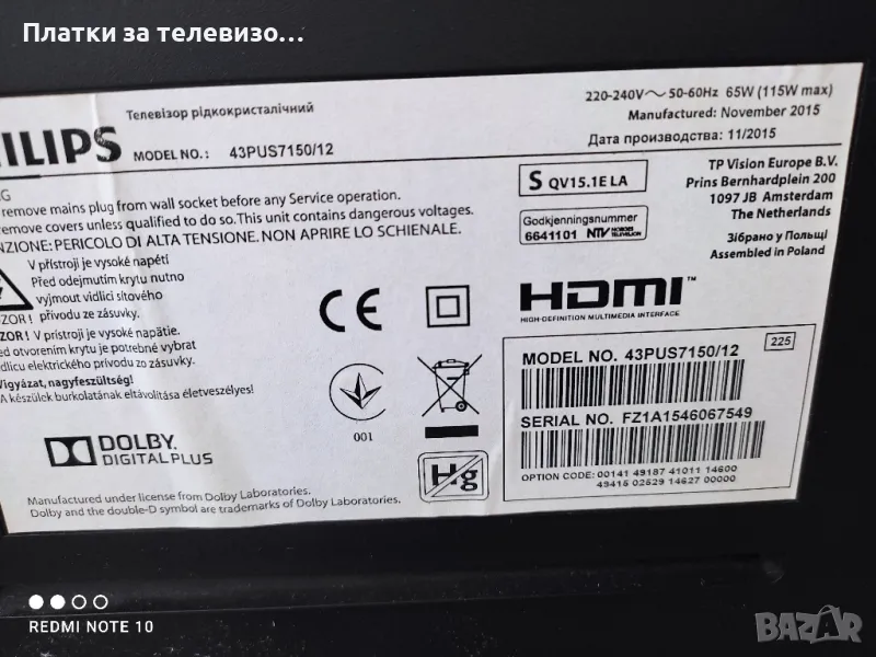 PHILIPS 43PUS7150/12 за части → Обява 49737048